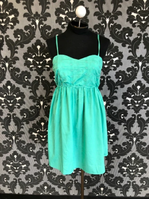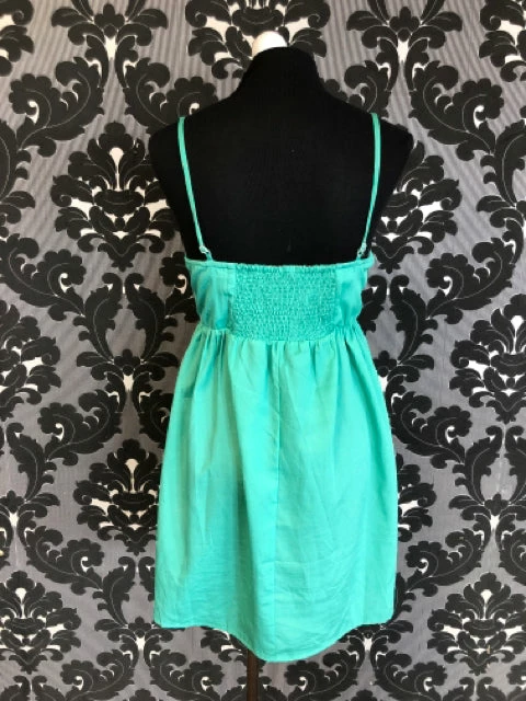 Size Large Green Floral Top, Plain Bottom Spaghetti Strap Dress