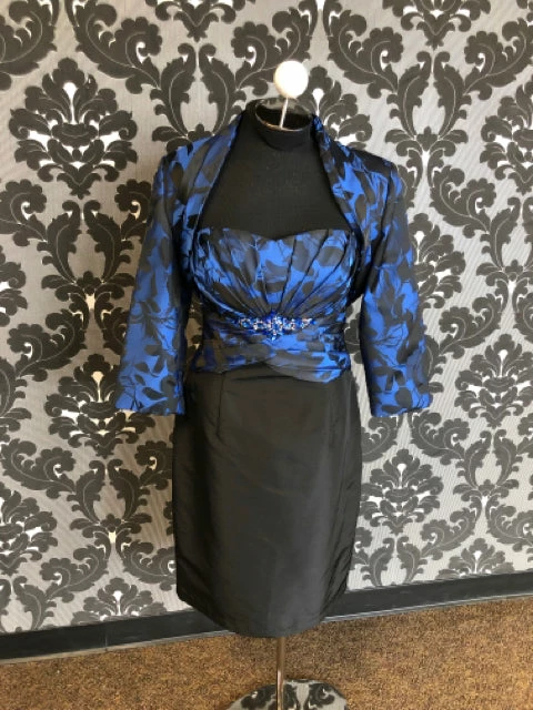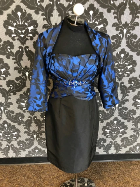 Social Occasions 211834 Women’s MOB Satin/Taffeta Black/Sapphire w/ Jacket