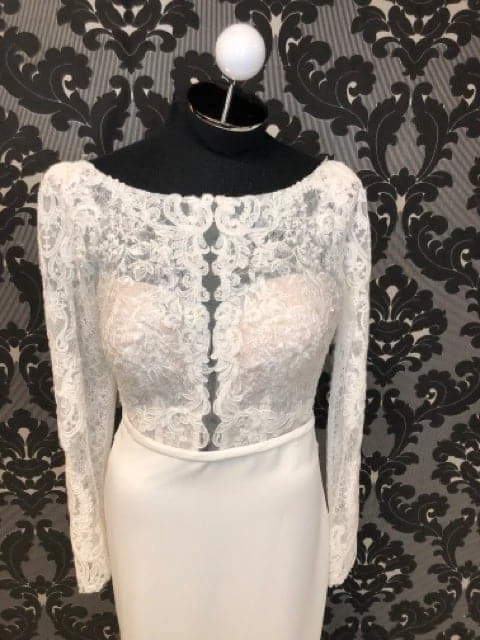 Stella York 6817 Women’s Wedding Dress Crepe/Lace Ivory Size 10- MERYL