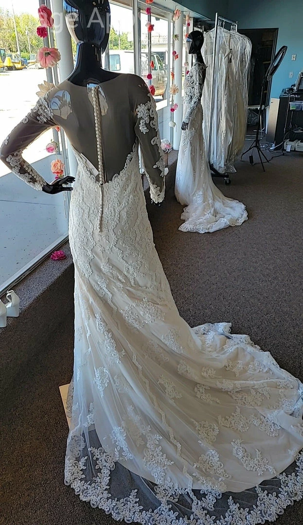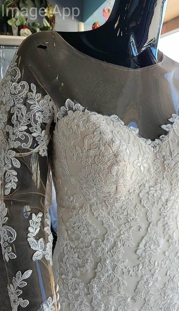 Stella York Women’s Wedding Dress Lace Ivory Size 8 Long Sleeve “PRICED AS IS”