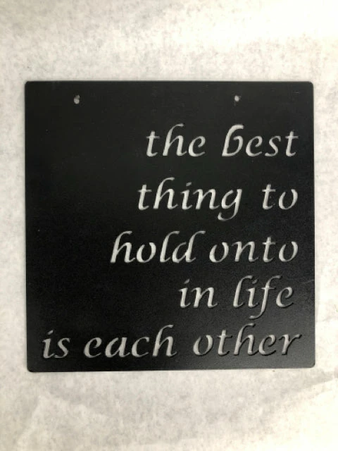 11″x11″ Black Metal “the best thing to hold onto in life is each other” Sign
