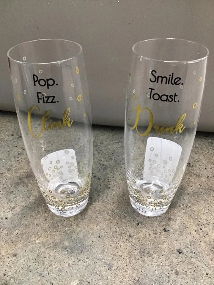 Stemless Champagne Flutes “Smile. Toast. Drink” “Pop. Fizz. Clink”