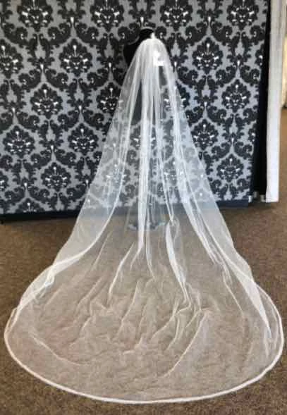 Cathedral Ivory Tulle with /Rhinestone edge Veil