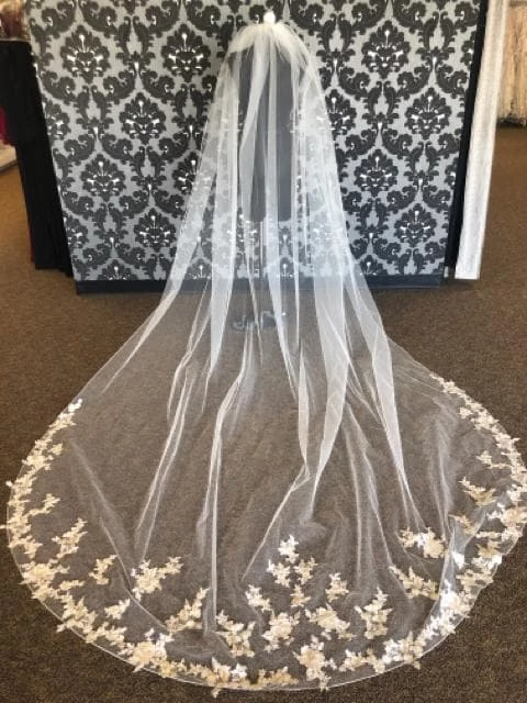Giselle Veil Tulle Ivory/Gold Lace Edge
