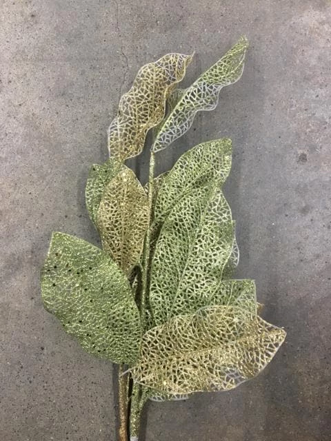 28″ 2 Ct Green/Silver Glitter Elliptic Leaves Bundle