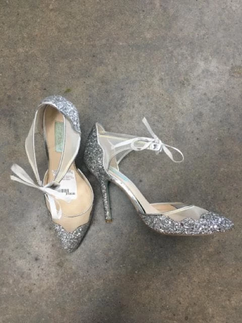 Silver Glitter Mesh Heels