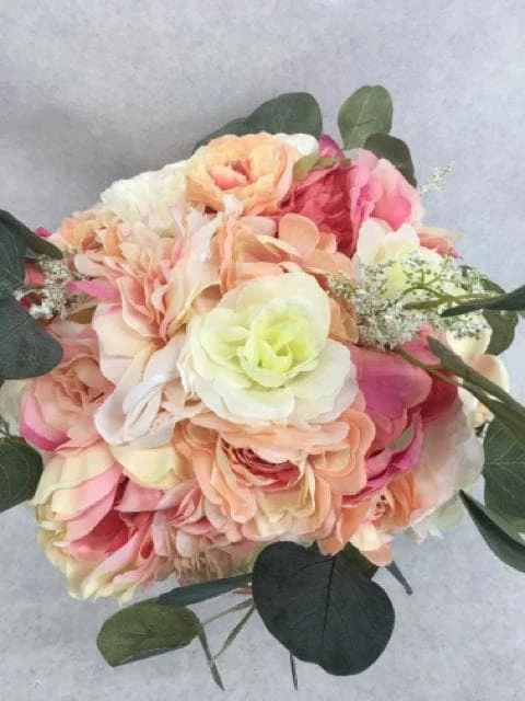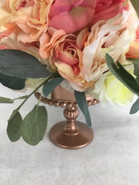 Full Floral Arrangement w/ Silver Dollar Eucalyptus in Rose Gold Glass Vase