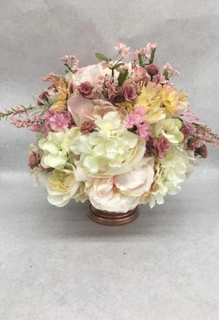 Full Floral Arrangement w/ Silver Dollar Eucalyptus in Rose Gold Glass Vase