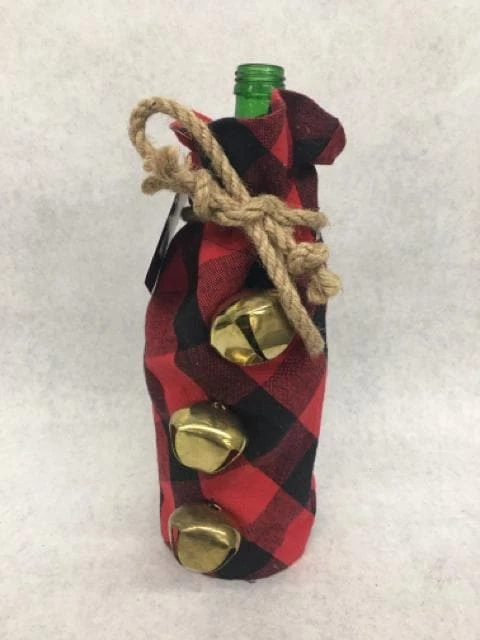 Cloth Checkered Wine Bag W/ Bells Black/Red