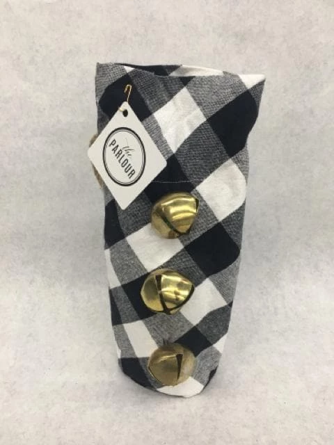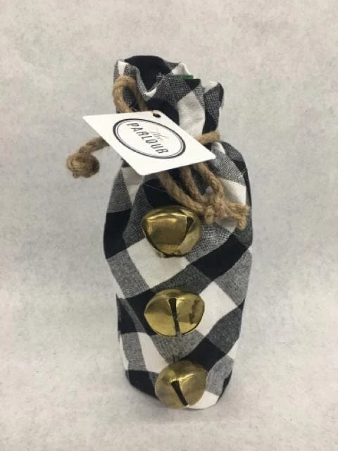 Cloth Checkered Wine Bag W/ Bells Black/White