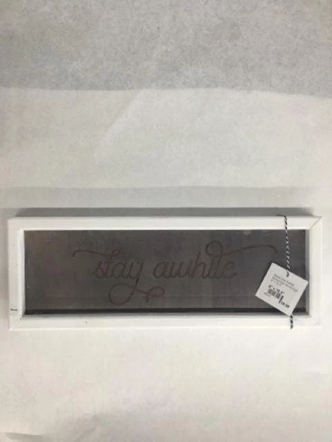 Wood Stay Awhile White/Grey Wood Sign 6″ x 16.5″