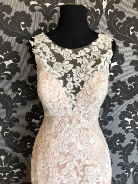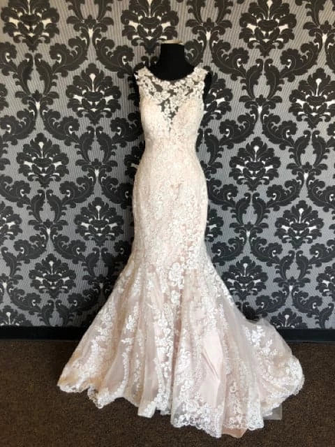 Allure Bridal 3115 Lace Champagne/Ivory Zaevon AS IS pinholes & missing buttons
