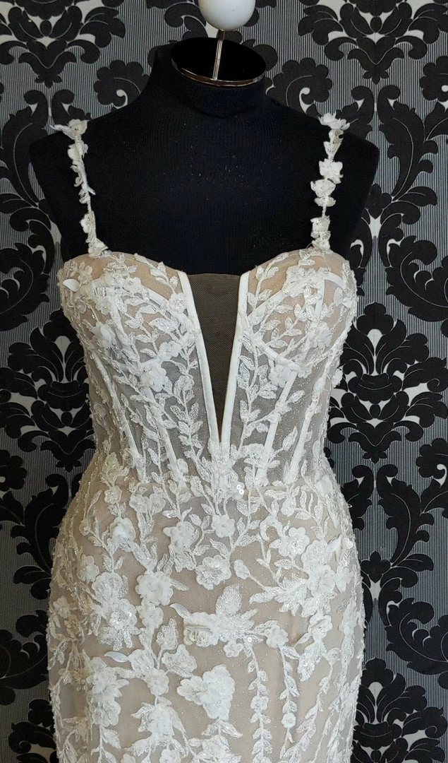 CallaBlanche sequin/lace sleeveless “CAITIE” “AS IS” (Loose beading, threads, & stains)
