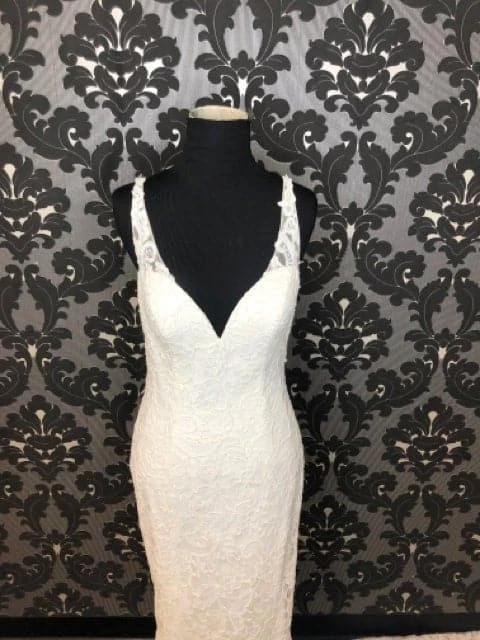 Casablanca 2319 Wedding Dress Lace Ivory Size 8 Sleeveless Sheath