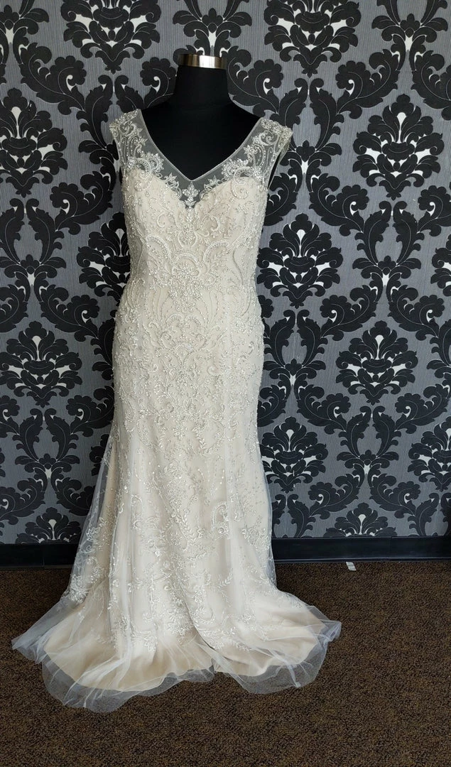 Something Blue Essense D2388 Wedding Dress Size 12 Lace/Chiffon Ivory Sleeveless WEDDING DRESSES