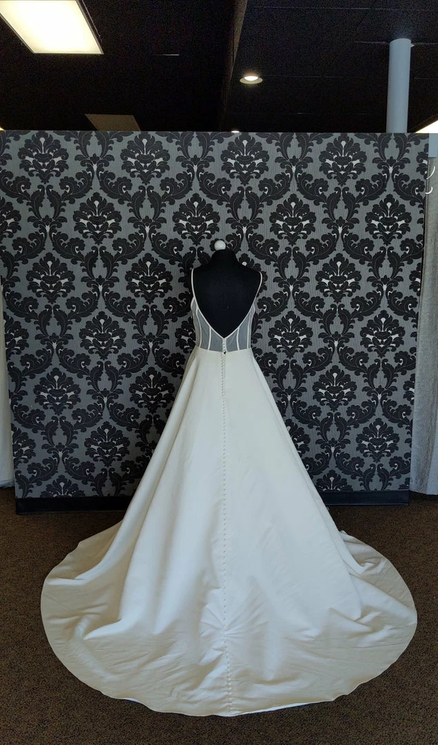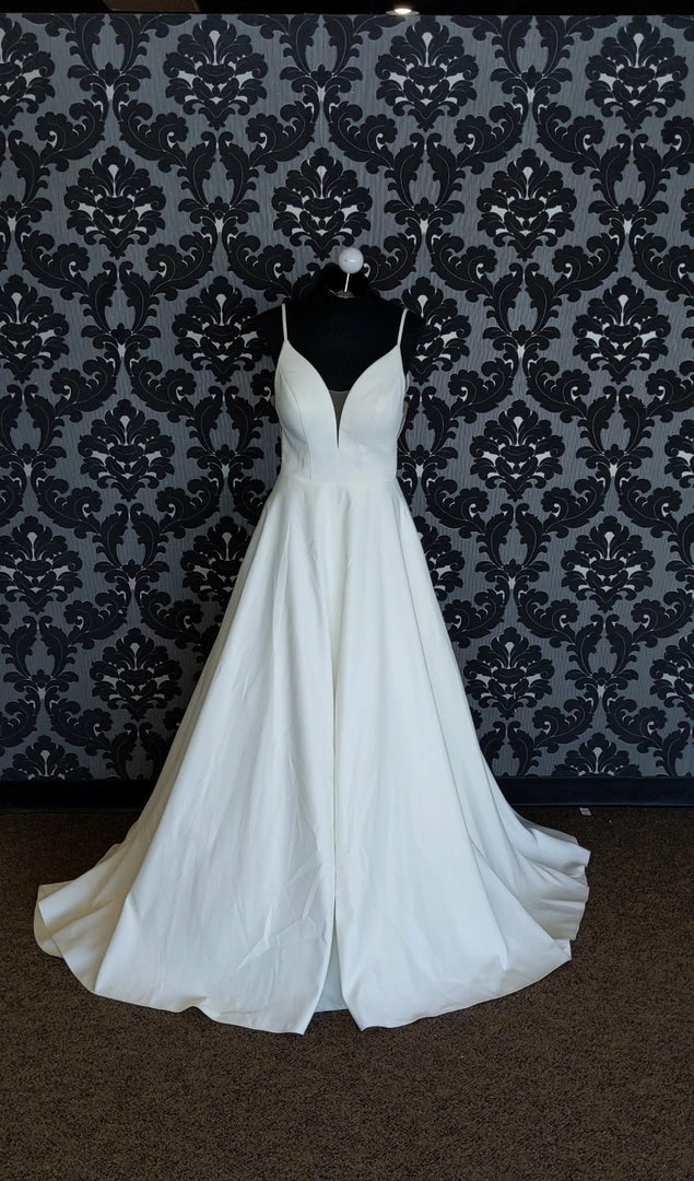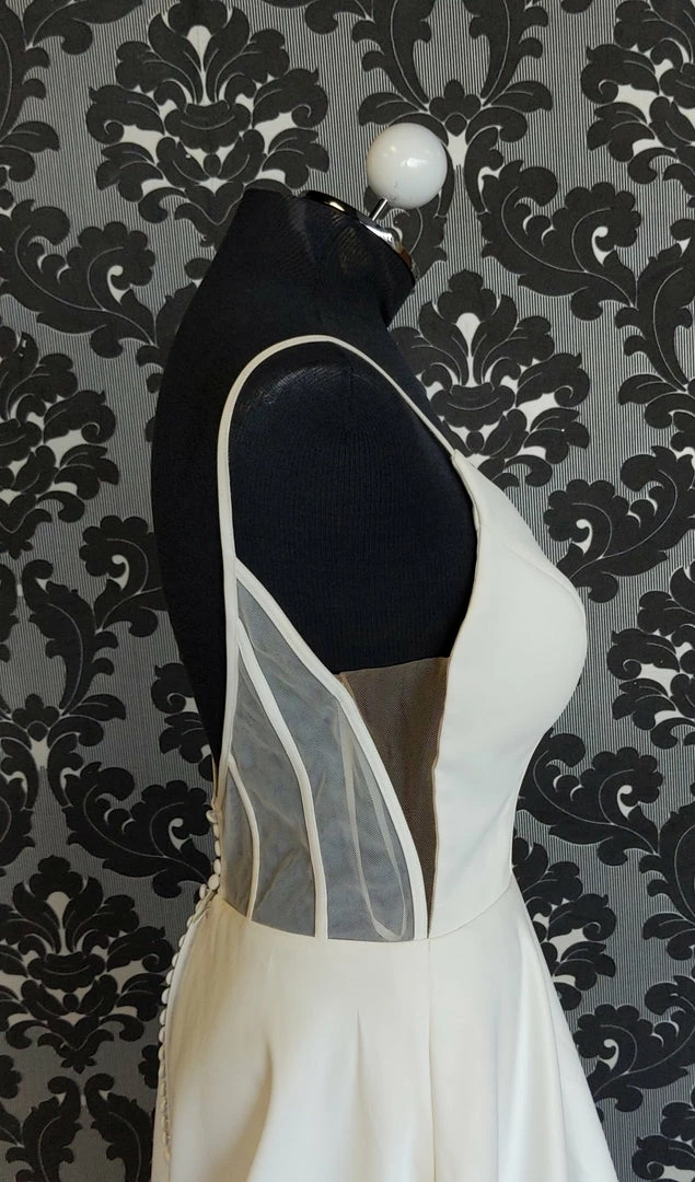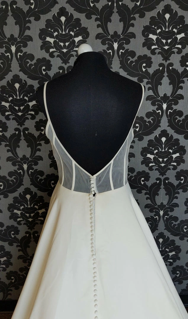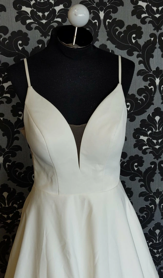 Essense satin ivory sleeveless A-Line “EVEY” “AS IS” (Stains/hole in back)