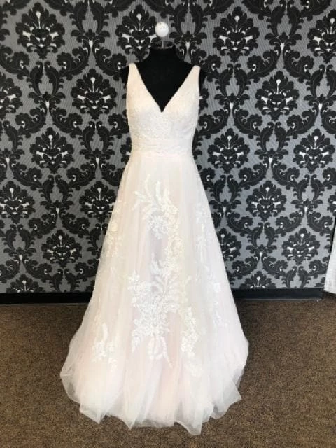Jacques Size 12 Misty Rose V-Neck Sleeveless Tulle A-line