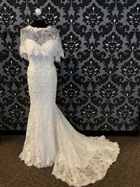 Justin Alexander JENNA 8920 Women’s Wedding Dress Lace Ivory Size 14 w/ Shawl