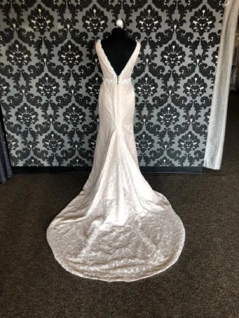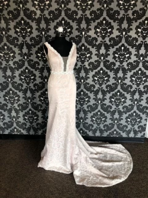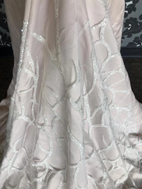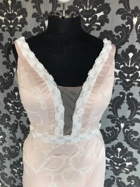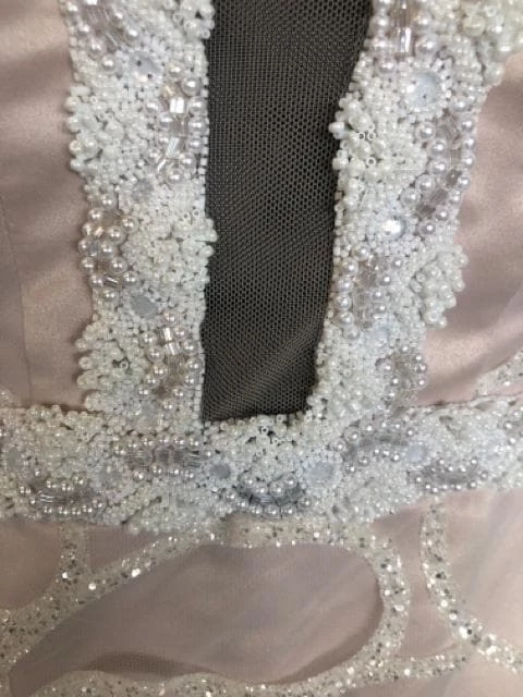 Perfioni Couture Women Champagne Satin Ivory Glitter Patterned Size 10