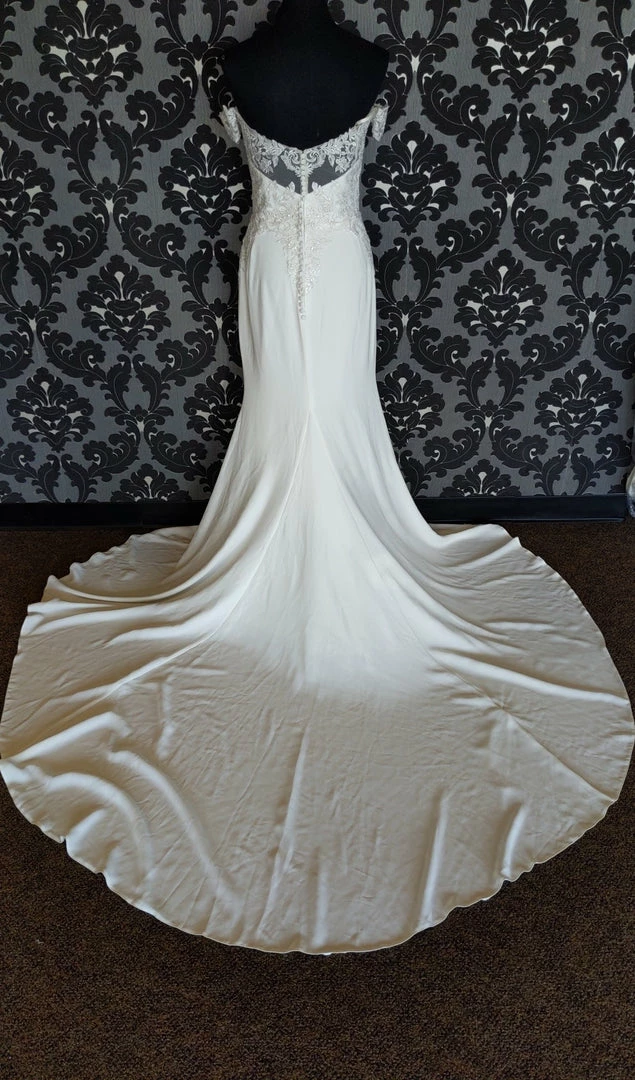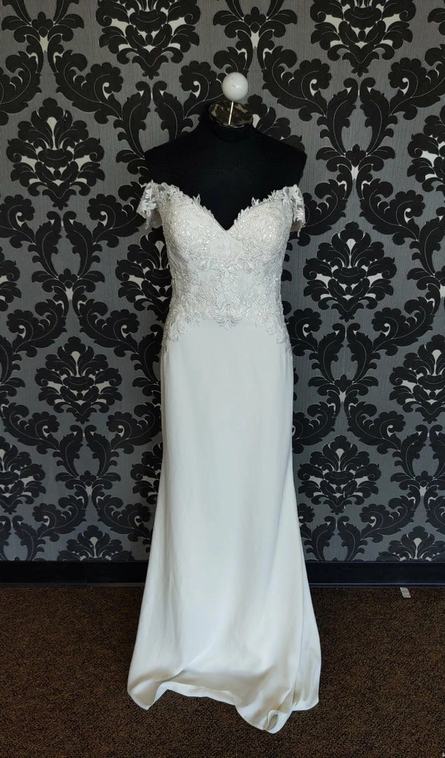 Sincerity 44237 Wedding Dress Size 14 Crepe/Lace Ivory Off the Shoulder