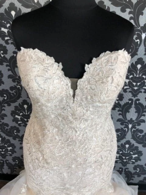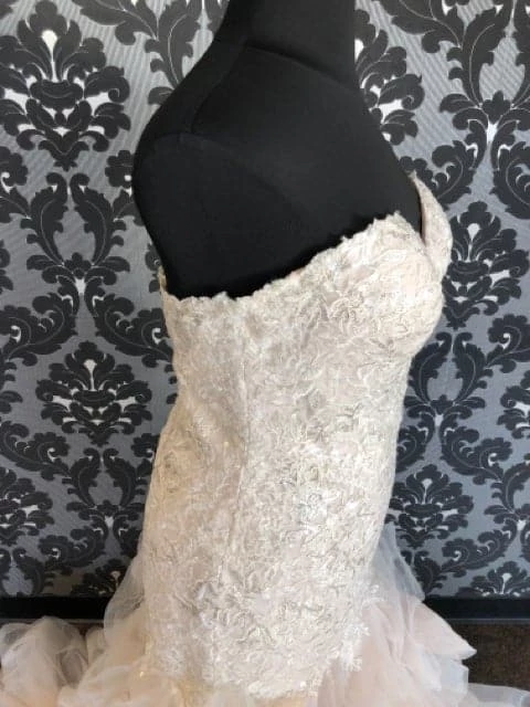 Stella York 6750 Sequin Lace/Horsehair AS IS LARGE HOLE IN BACK LACE MESH- STARR