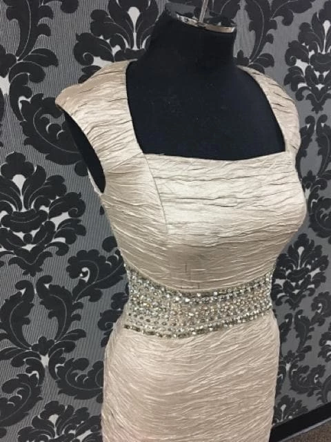 Eliza J Tan Textured Size 6 Cap Sleeve Cocktail Beaded Waistline