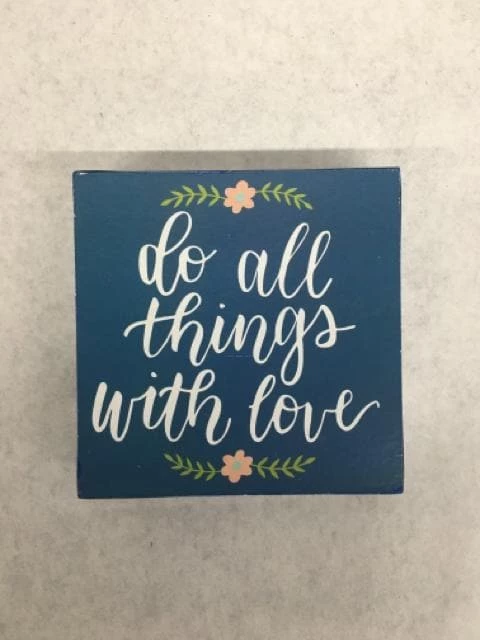 Galvanized Frame Do All Things With Love Wood Block Sign