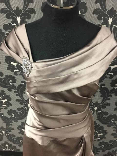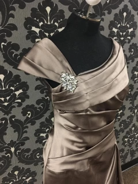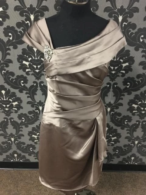 Jasmine Size 8 Mocha Knee Length Ruched Satin
