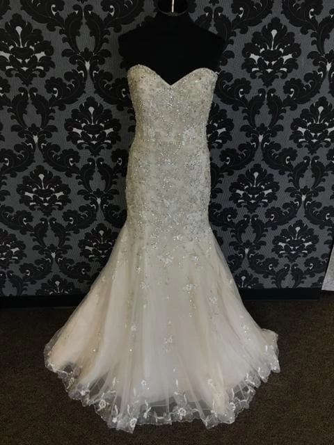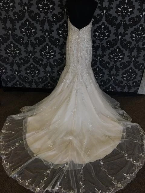 Size 12 Light Gold/ Silver Mori Lee 2886 Beaded Strapless Fit & Flare