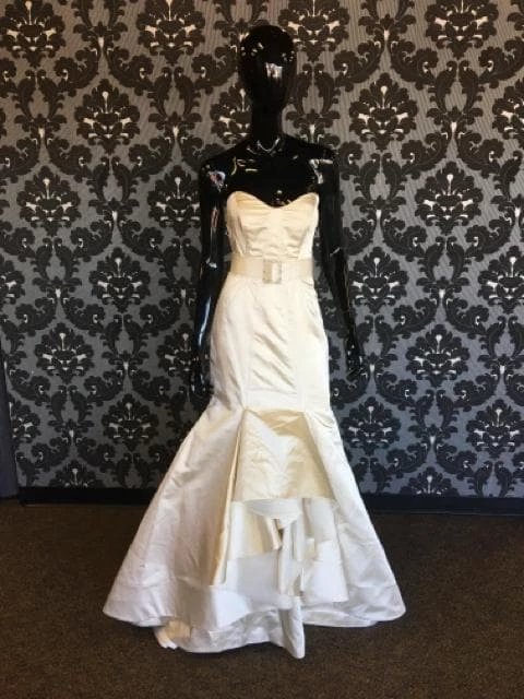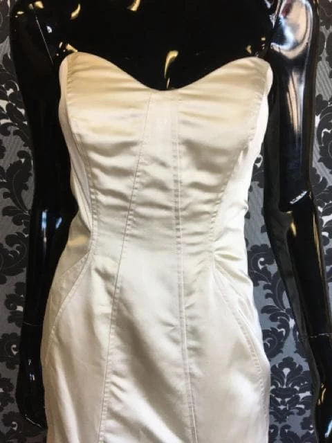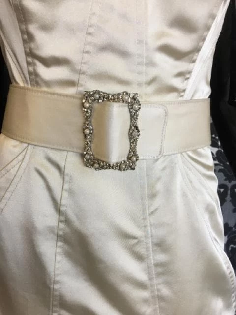 Size 8 Ivory Satin Strapless Fit & Flare Sweetheart W/ Belt