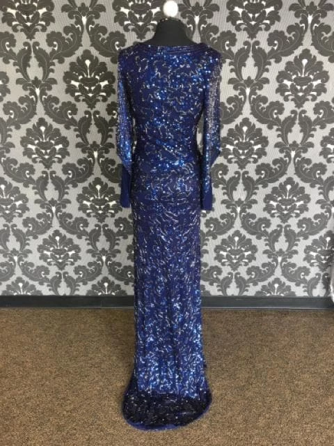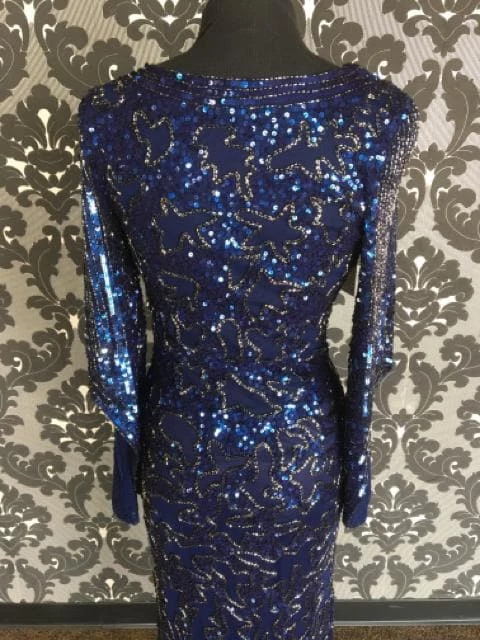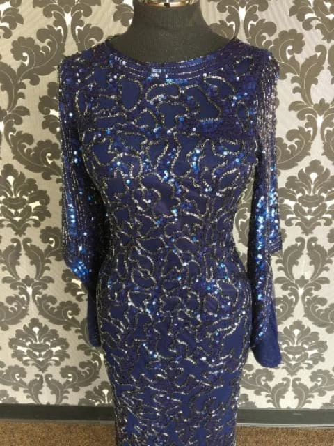Size 8 Midnight Primavera All Over Beaded Scoopneck Long Bell Sleeve 9713