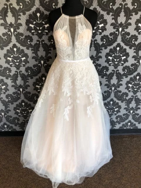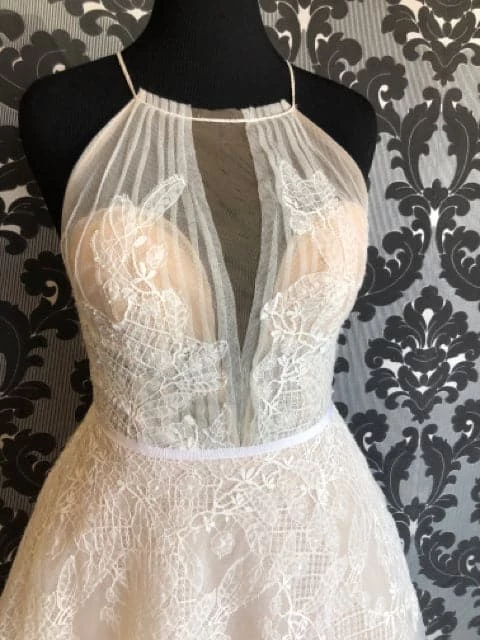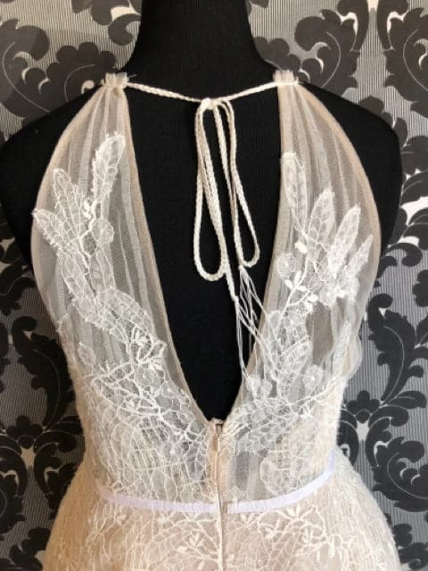 53701 Tulle Aline with Pleated Vneck and Tassel Tie Back