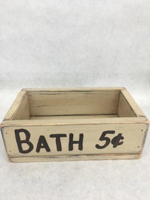 Whitewash Wood Box “Bath 5 cents”