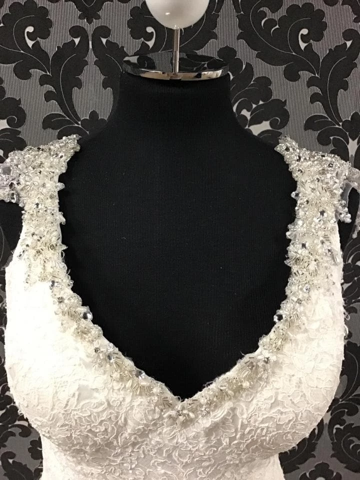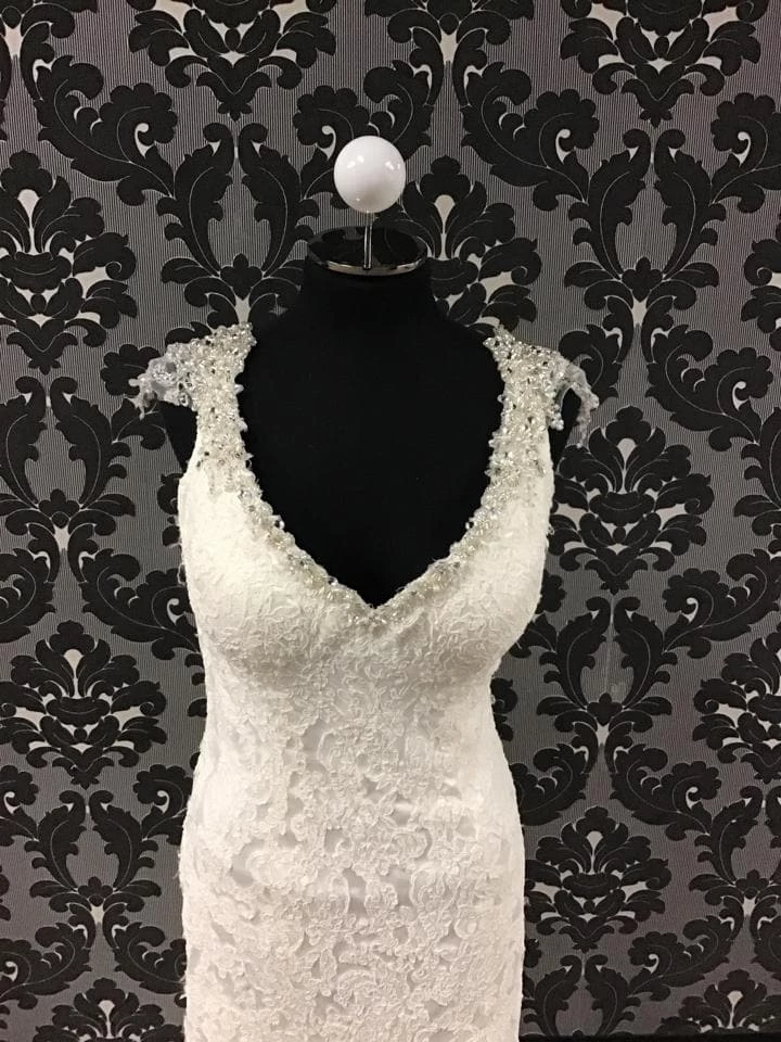 Maggie Sottero 4MS854 Lace Ivory Wedding Dress Size 12 w/ Beaded Straps